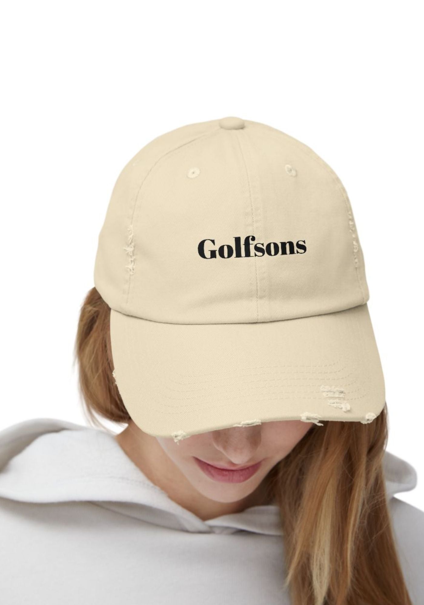 The Golfsons Distressed Cap is made from cotton twill and designed with a classic 6-panel construction. It features a curved visor and distressed detailing for a vintage-inspired appearance. The cap includes an adjustable D-ring strap for a custom fit and an unstructured body for breathable comfort.