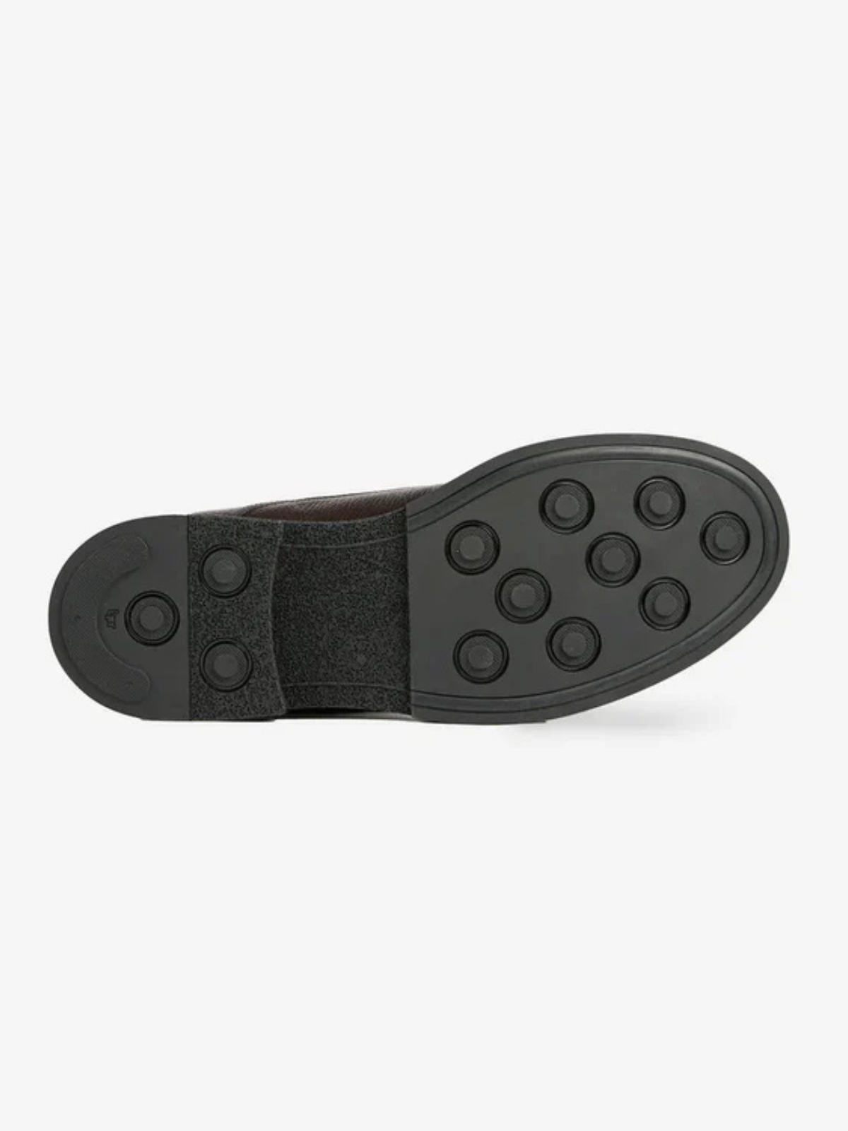 These lace-up shoes are made from hammered leather with a textured finish designed for durability and everyday use. The rubber sole provides stable footing and a lightweight feel, while the round-toe structure and flat design support comfort during regular activities. Available in multiple colors and full adult sizing.